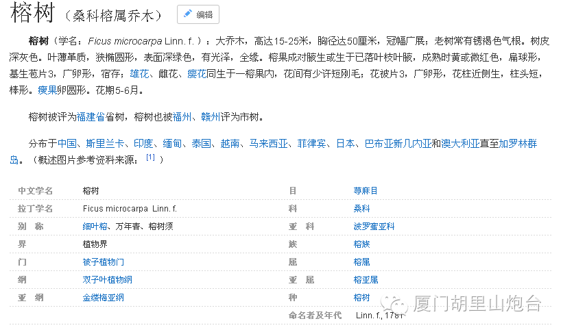 【炮台君】你现在所在的位置是我们胡里山炮台景区前门出入口的一条榕林古道,两侧各有11株古榕树,它们树冠交错,绿盖如伞,高而挺拔,随风飘扬的树须像关羽的美髯。过去这里是一条跑马道,1984年胡里山炮台开辟为游览区之后,改建为石阶,形成“百米榕道”。榕树可是我们福建省的名树,也是省会城市福州市的市树。在我们炮台景区内还有几株上百年的榕树呢!你看看这是榕树的基本资料。